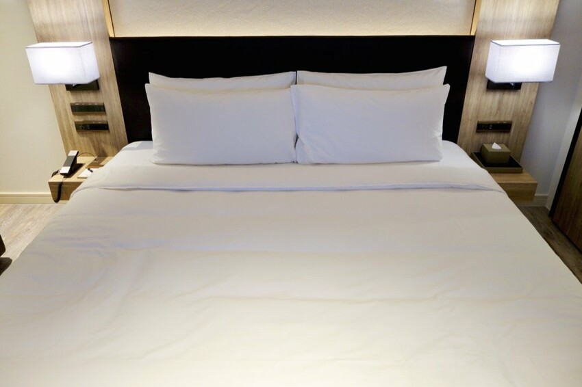 ▼ 床墊軟硬適中,兩顆枕頭可以任調高度,睡一覺起來非常舒服!