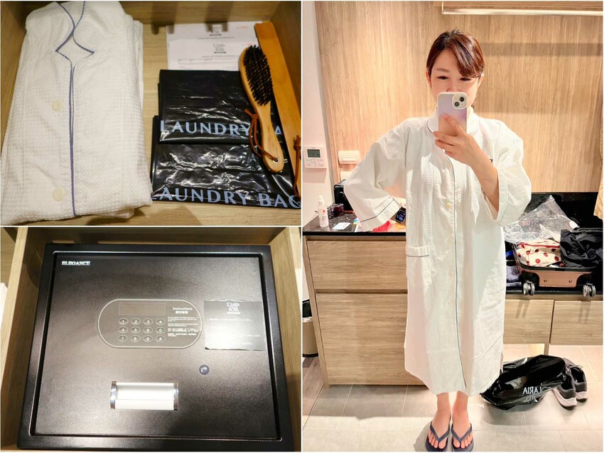 ▼ 抽屜裡有保險箱、睡袍、衣物袋跟皮鞋刷,睡袍很有日系簡約風~哈!