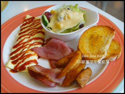 我和姐姐各點了美式套餐及歐姆蕾套餐,有基本的沙拉及蒜香麵包和薯條,
