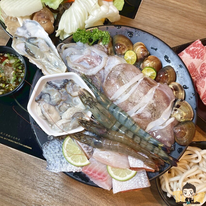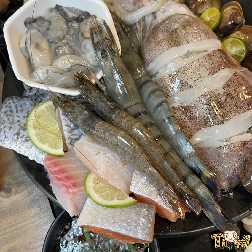 超級豐盛的海鮮總匯,有蛤蠣、生蠔、鮮蚵、軟絲、草蝦、鯛魚、鮭魚及鱸魚,海鮮控絕對能吃得過癮