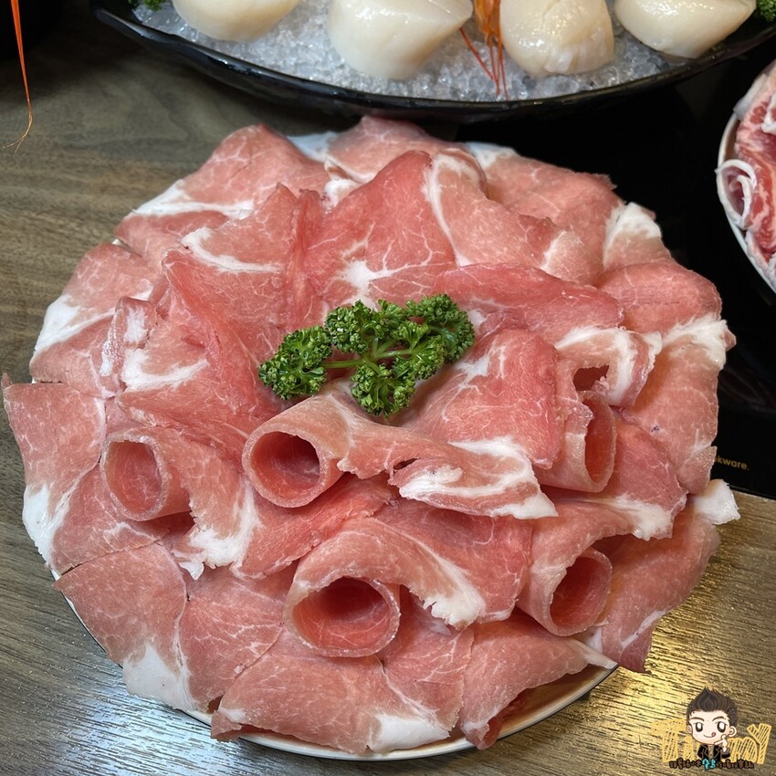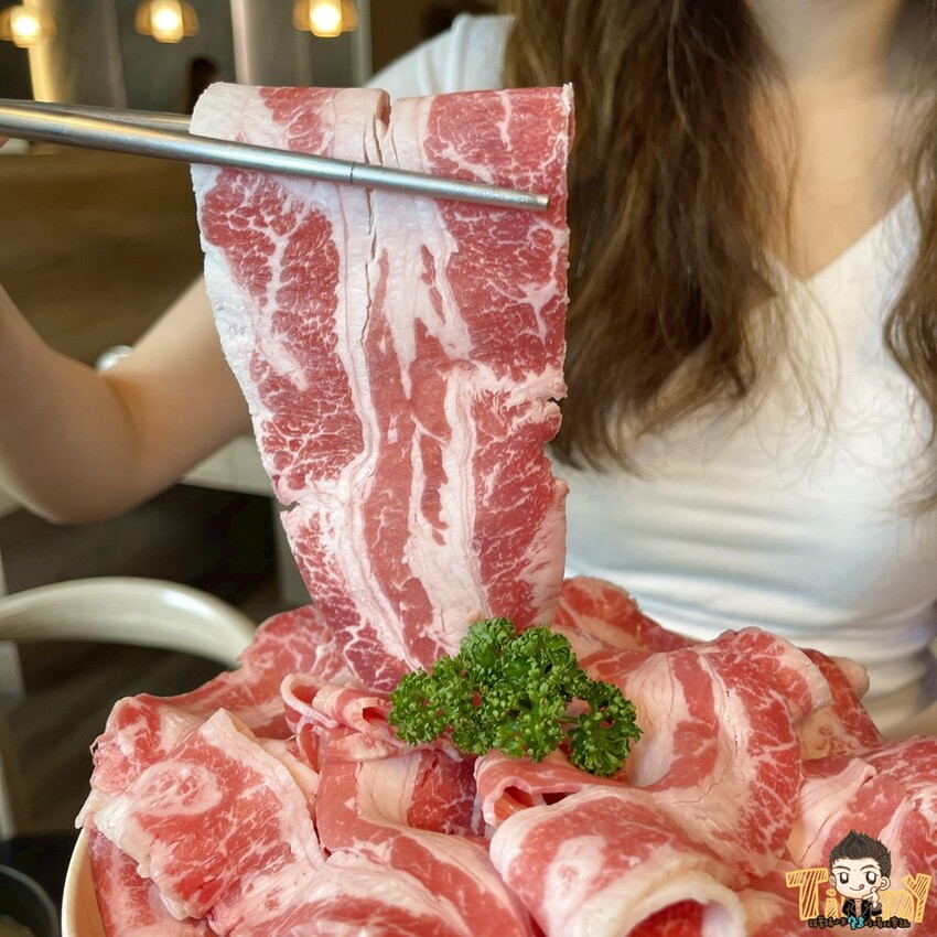 不吃牛的朋友可以選極黑豚(300g),油花均勻不會太肥,有軟嫩豬肉甜味,很適合涮白湯