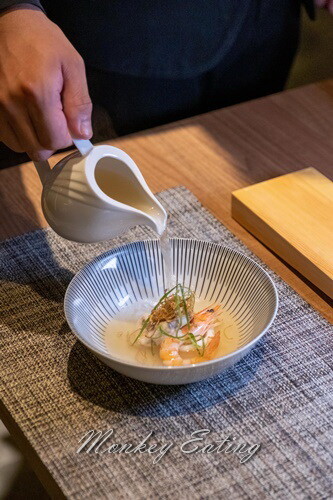 鱸魚新鮮度很夠,用煎的方式保有外皮焦脆,魚肉肉質一樣的細嫩好吃,我嘗試了一下搭配鹽昆布跟山葵,感覺重回到了日本那種懷念的味道