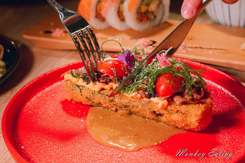 這裡的餐點不僅好吃,擺盤也很注重,餐點上桌也能有視覺上的享受。這道將松露炒飯塞進中卷裡很有創意,迷人的醬色搭配滿滿松露香氣,連隔壁桌看到也都想點一份了~