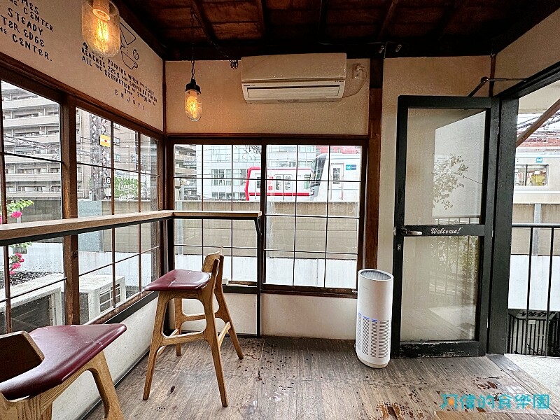 這就是二樓最獵奇的喝咖啡空間,窗外就是電車高架橋,一分鐘內總有多列電車來回經過,鐵道迷、電車迷一定會很愛。