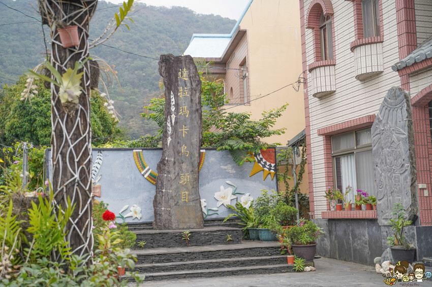 只有頭目家才會有手工雕刻的石碑,充滿原住民特色圖騰