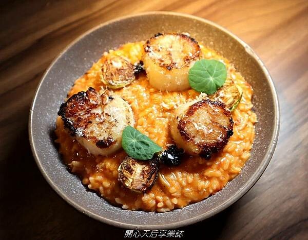 燉飯吸足了茄汁及干貝鮮味,吃起來綿密甜美,帶點番茄酸香,是多層次口味的美味燉飯!