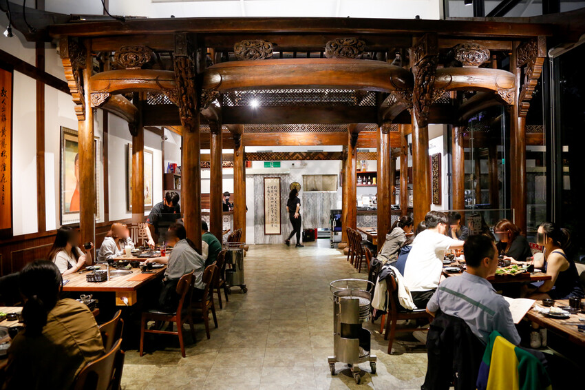來到禪燒肉見到這透明玻璃屋內帶著中國式古典風的設計,經由服務人員介紹才知道原來採用的木頭是200多年大陸北方徽派建築楠木,很有歷史的氛圍,在這樣的用餐環境吃燒肉很特別。