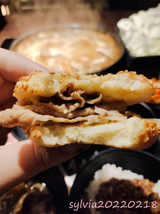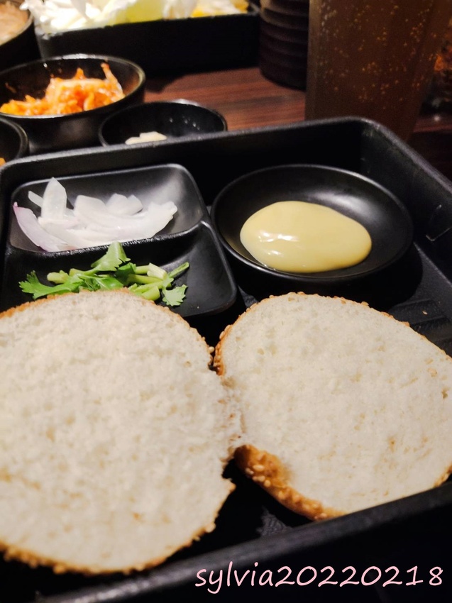 ↓聽說是招牌,光餅。我看著像早餐店的小漢堡。香菜、洋蔥、蜂蜜芥末醬(那醬像美乃滋。)