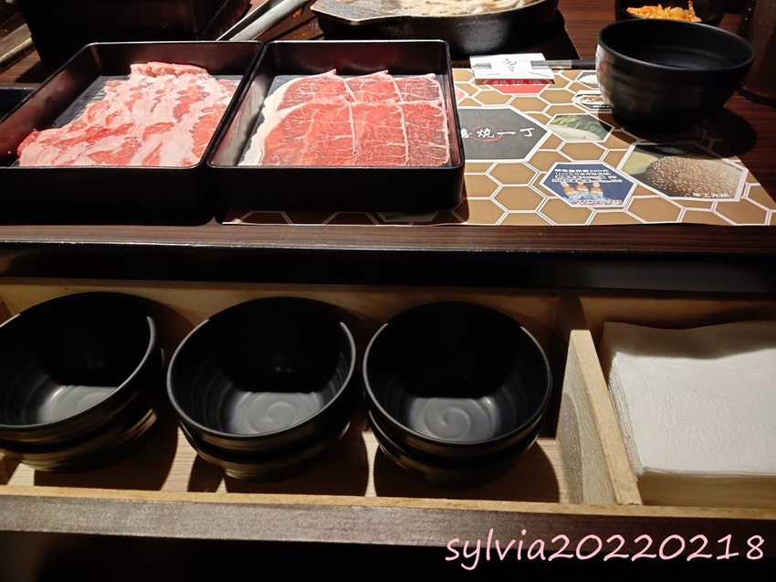 ↓幸好我來的早,入座時只有我一個人。桌邊有七味粉、壽喜燒醬、水。 鍋底有日式醬汁壽喜燒和香麻新疆孜然可以選擇,阿我不吃辣。