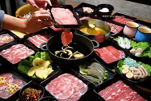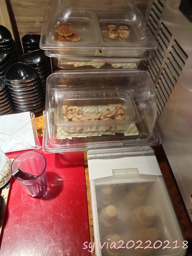 餐車沒拍是因為店內當時人太多,我害羞。主要是蔬菜類,高麗菜、洋蔥、玉米、南瓜片之類的。菇類和豆腐豆皮類都是服務員一整盤端來問有沒有需要加一點。 ※整個吃下來問了我三~四次,就還蠻勤勞的。