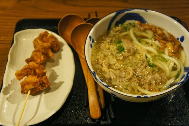 《蒜味牛肉烏龍麵+ 炸雞塊》