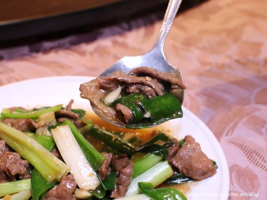 蔥爆牛肉肉質軟嫩且先醃漬過,再加上大把大把的蔥段