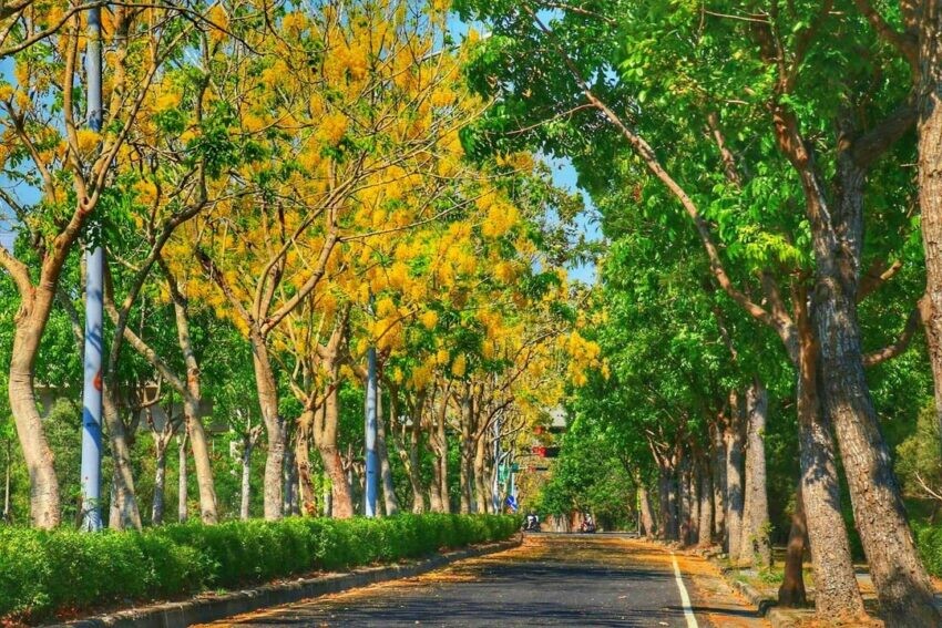 前面提到台南市中心成大周邊有很多台南阿勃勒景點,如果再稍微往上走一點來到東豐路與長榮路交叉口這一帶,也是知名的賞花景點喔!每當到了阿勃勒盛開季節時,總會看到不少當地人在此賞花、拍照、散步。這裡對遊客來說也因交通便利的關係,既然都已經來到台南,絕對不要錯過各種能賞花殺底片的好機會囉!
