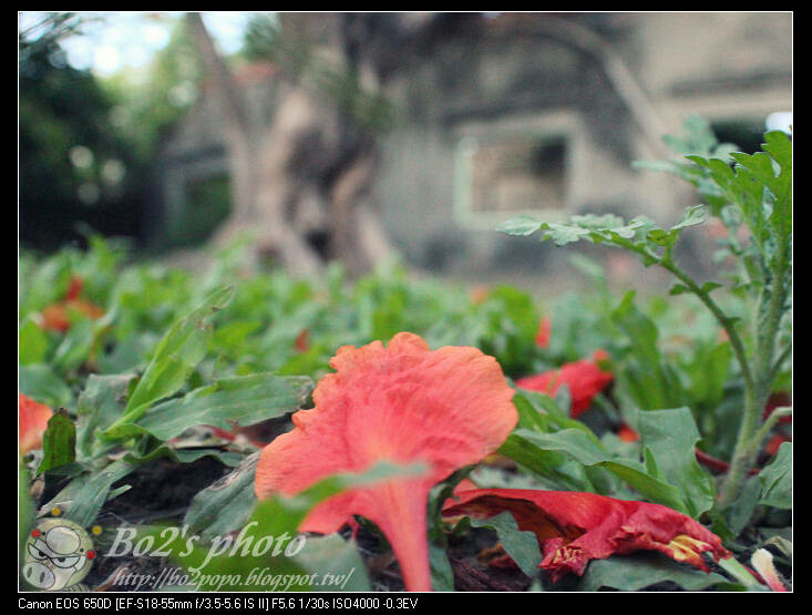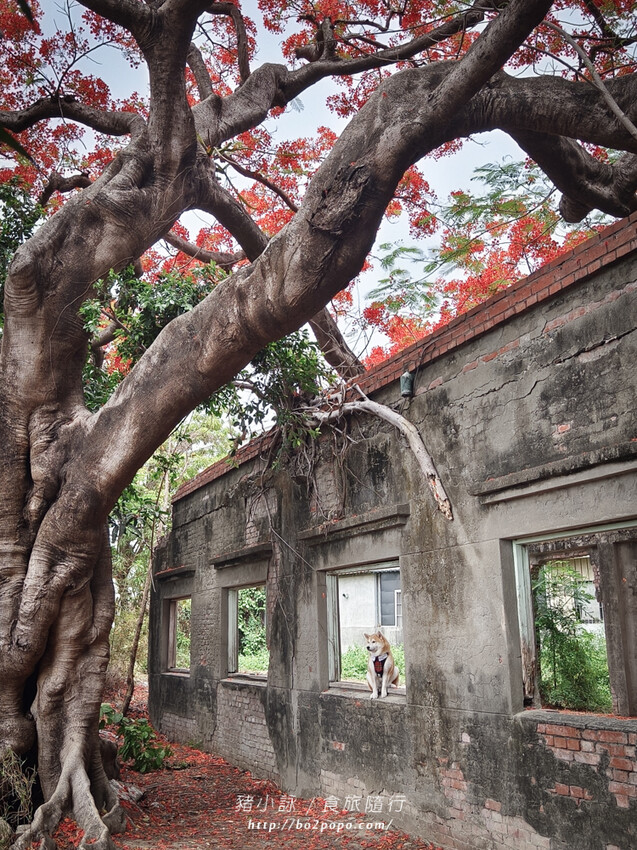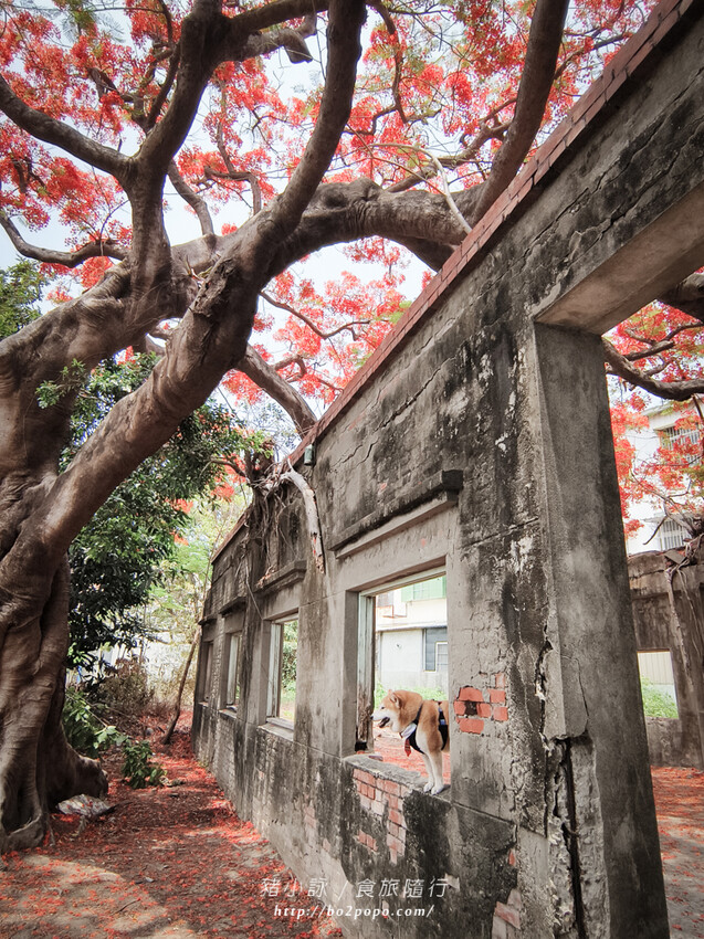 鮮豔的花朵配上頹圮的建築,同個空間殘留兩個不同時空的物體,那感覺很妙哩。