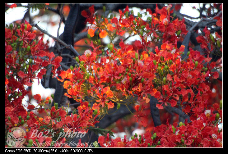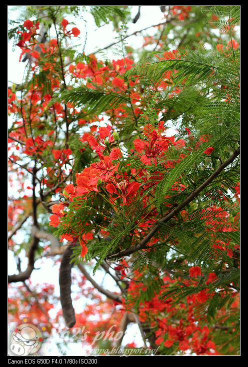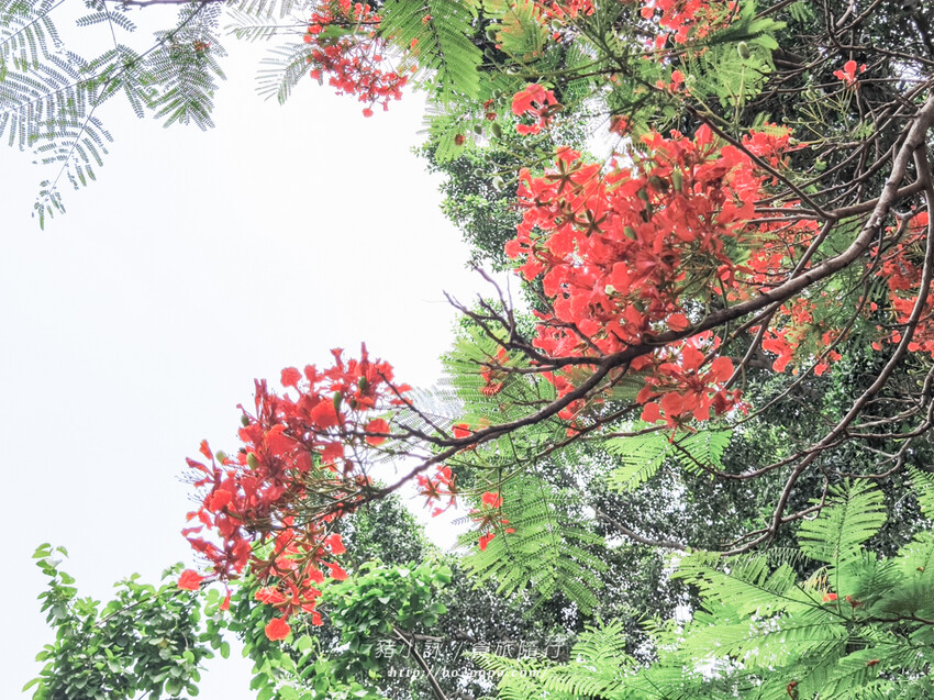 目前正是鳳凰花開正旺之際,花開燦爛彷彿就是要迎接人群的到來。