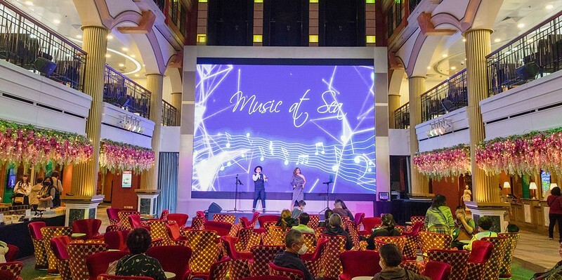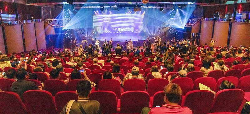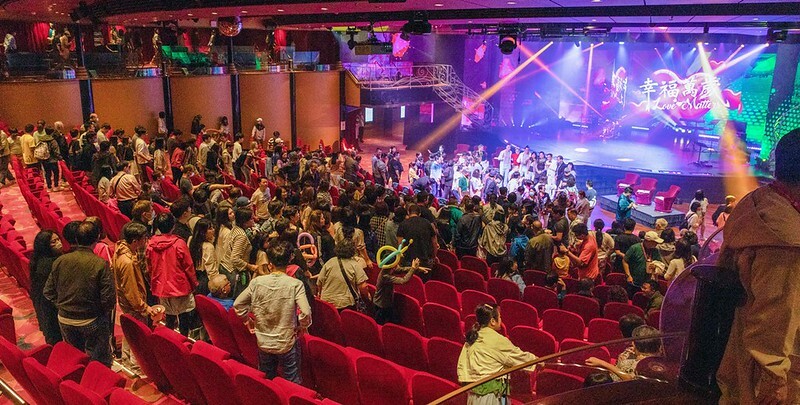 記者會的現場在船上七樓(甲板)的星座劇場舉行,老實說我進到劇場只有不斷的驚呼,這也太大太豪華了吧,和我以前搭過的郵輪完全兩回事。