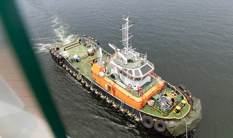 回程的高雄港風情,還能就近在船上看到引水船工作的船影,LUCKY。