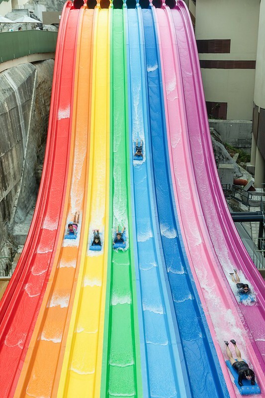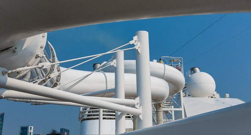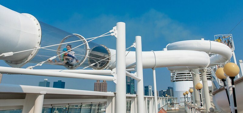 這些滑水道中間還有幾段是透明的,感覺好像在空中滑行、飛翔,酷得亂七八糟。所以,記得上船得帶泳衣,忘了帶也沒關系,船上有得買xd。