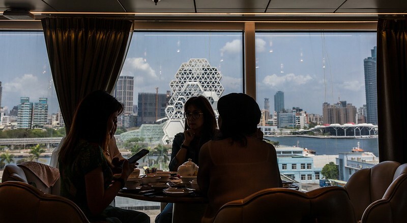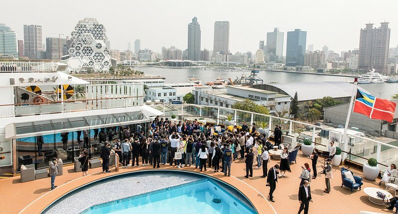 當天記煮會在船上舉行,高雄、澎湖不少長官和旅行業者、媒體齊聚,幾百人在船尾諾大的「小」泳池旁也顯得稀少,足見這艘郵輪有多大,登上船頂可以看到幾乎整個高雄港,好生漂亮,雖然天氣有一點白茫茫。