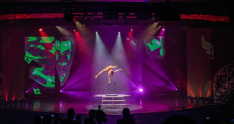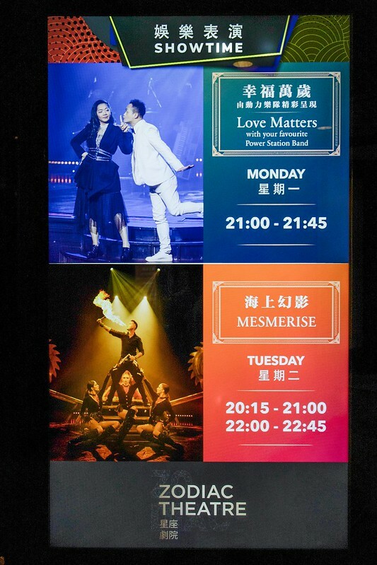 星座劇場的表演蠻多的,以當次我們參加為例就有三、四種,歌舞、魔術、特技和歡眾互動的現場節目都相當精彩,還有提供獎品的互動遊戲,看得台上台下樂不可支。