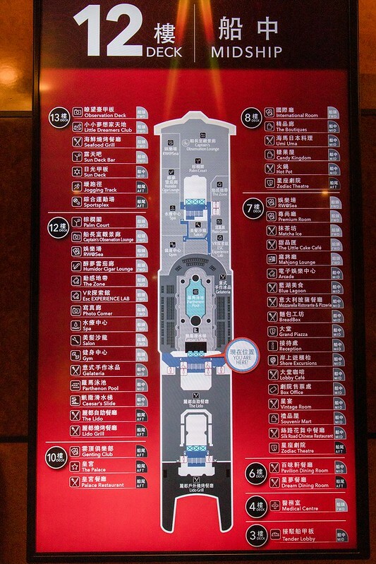 船上的每個角度都有船的平面圖和標示圖,但即便如此我還是常常走到迷路和朋友約見面,最後還是要用手機找人(船上有付費網路)。船上許多角落也都掛有各貢藝術品,走著走著好像進到畫廊。