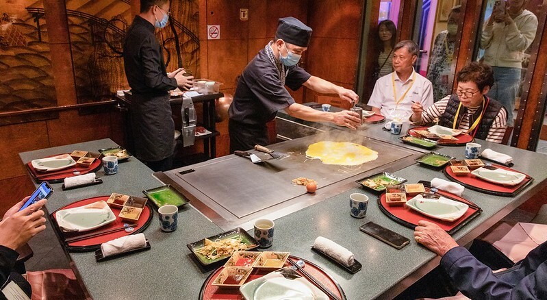 鐵板燒師傅的手藝十分高超,幽默感十足的表演逗得客人開懷大笑。