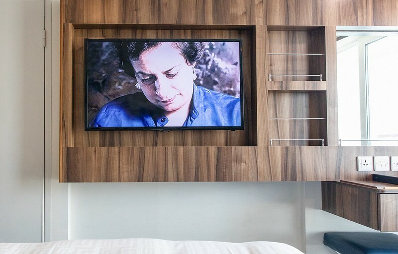 房間的電視也挺大的,最值得一提的是購買的船上網路非常順,最少連看影片都沒問題,這點也讓我頗吃驚,另外就是這個房型備有管家,其親切和周到的服務讓我印象深刻,這些等我細聊房上設備和服務時再詳談,這裡先簡單稱讚那幾晚為我服務的女管家。