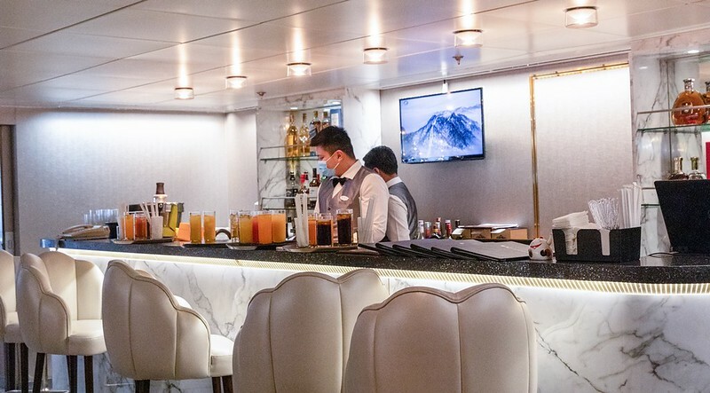 分上下兩層的星夢餐廳(需付費),有一點像大型酒吧,除了調酒、料理外,中間的廳池,也提供現場的音樂、歌唱表演。