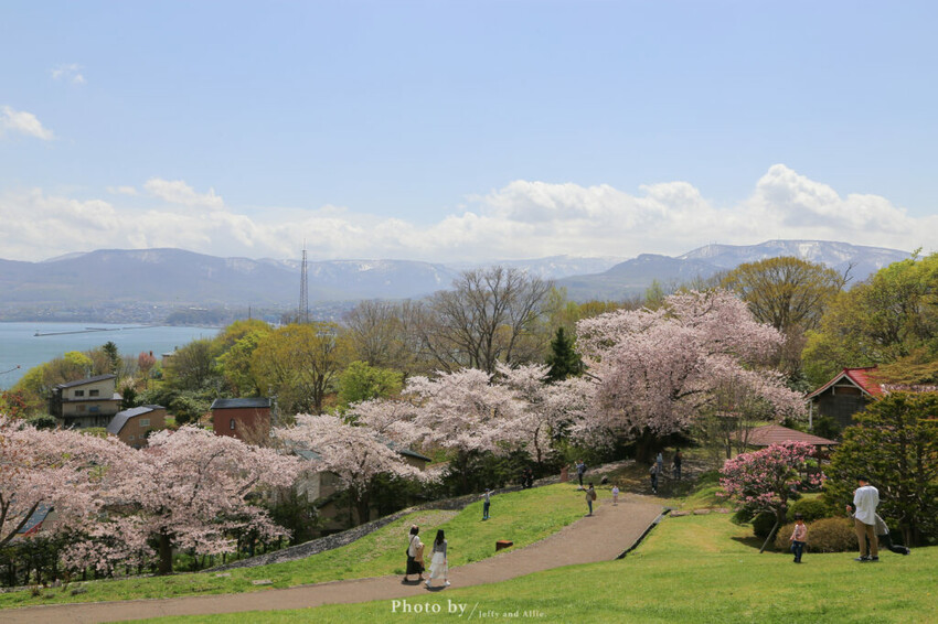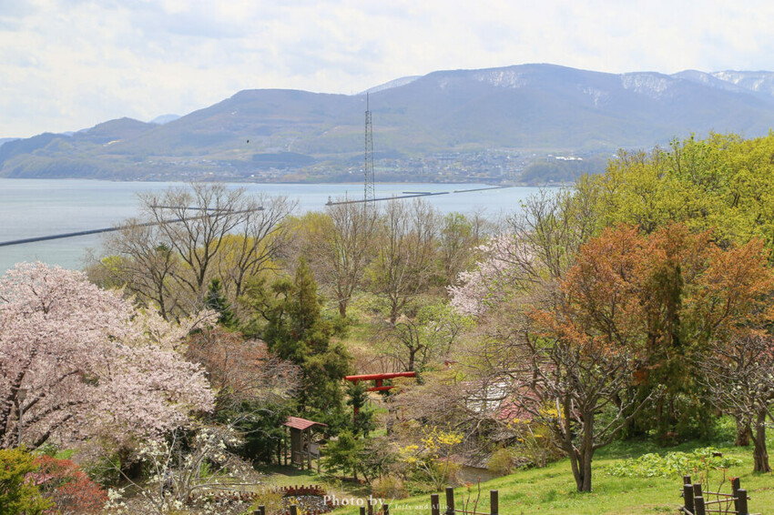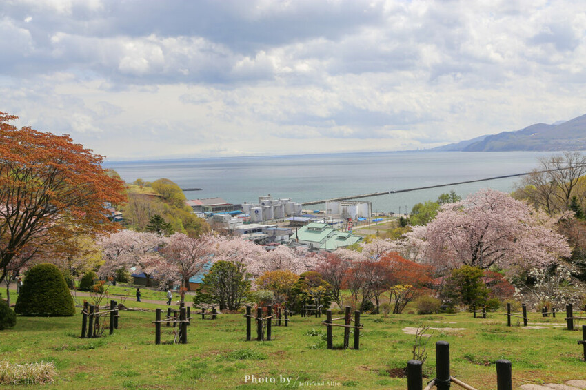 遠眺海岸與綿綿山脈,這裡能同時看到山景與海景,好像人間仙境!春天的山頭還有些白雪,搭配粉嫩的櫻花,微風一吹輕輕落下,小徑滿是掉落的花瓣,格外浪漫是小樽絕對不能錯過的絕美景點啊!!開始安排你的北海道旅遊