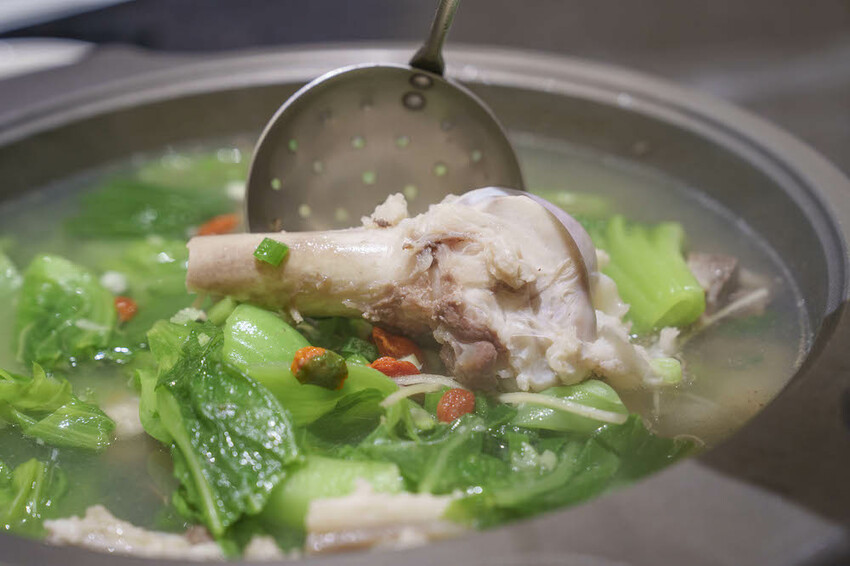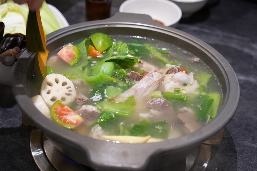 蔬菜羊肉的湯頭甘甜清澈~大骨骨髓最吸引我