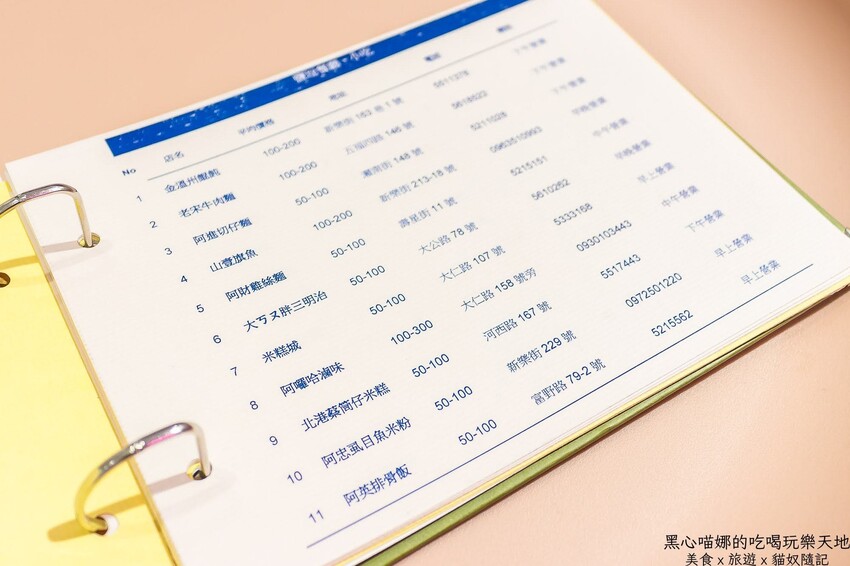 電視底下有這個小本本,裡頭蒐羅了鹽埕區大部份的美食店家資訊,包含小吃、飲料、酒吧、宵夜,應有盡有非常非常非常實用,想吃什麼就翻一下,閉眼隨便指一間去吃,不用再google找半天還找不到真正巷子內的古早味。