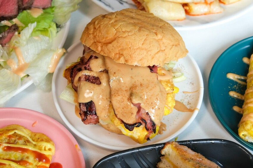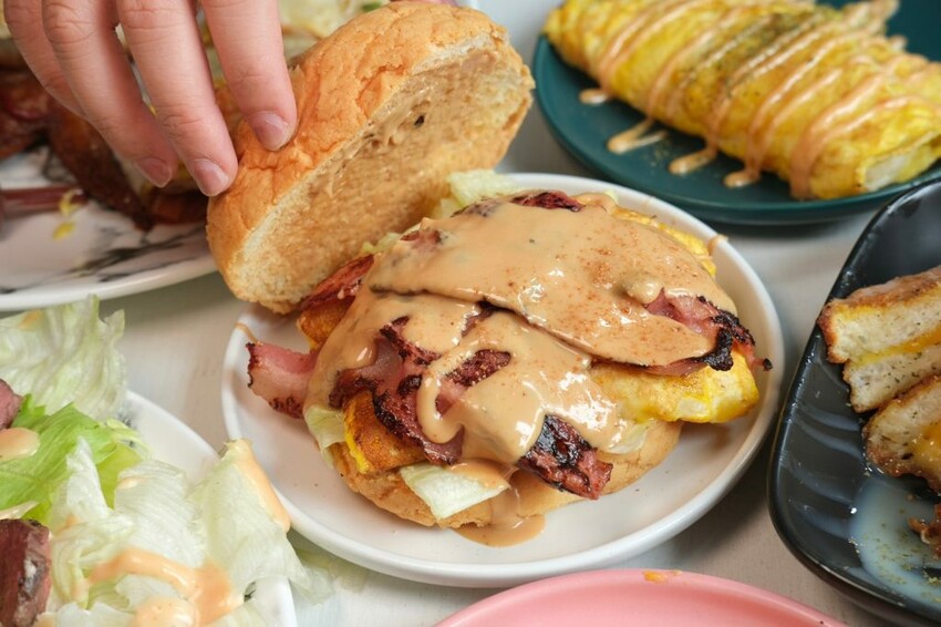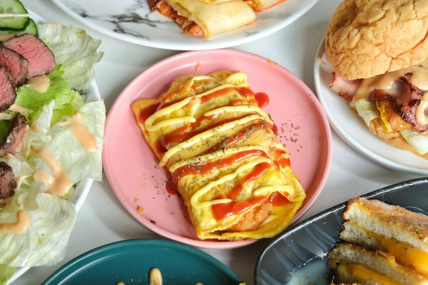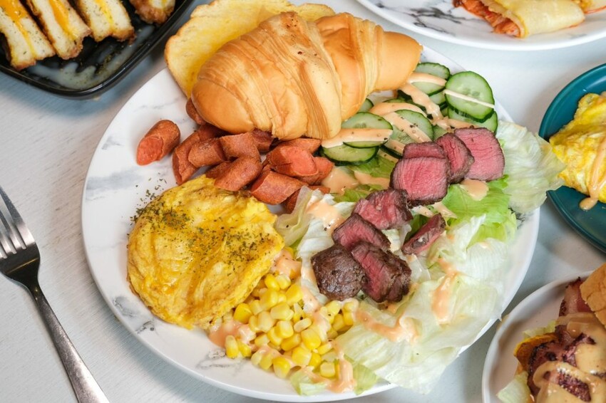 【當個晨食人】主打創意口味的早午餐料理,包含拼盤、吐司、漢堡、蛋餅、可頌、菠蘿堡、牛角可頌、法式吐司、鬆餅、炒飯和生菜沙拉,還有小點和多款飲品可以選擇,基本上都只要銅板價就能夠享用。