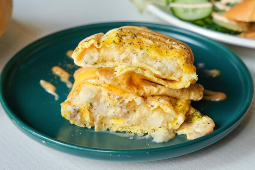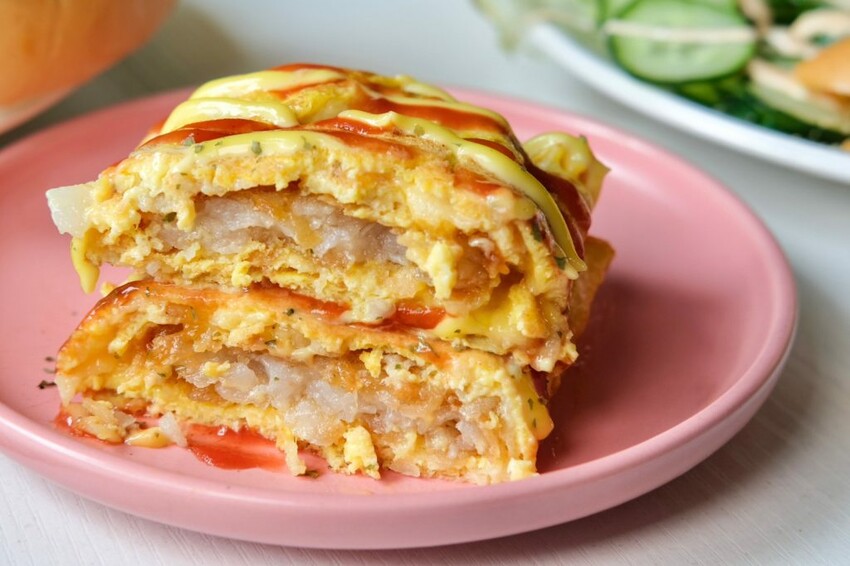 ▼熱愛馬鈴薯的人必點這兩道,真材實料的薯餅塔(紅盤)和薯泥起司捲(綠盤),在薄薄的煎蛋中包入薯泥和薯餅,再加上滿滿的起司增加濃郁感,一切開就能看到飽滿的內餡,趁熱享用還會有邪惡牽絲起司。