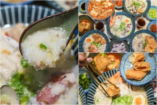 粥大福以雞湯粥為主打,變化出海鮮、麻油、XO醬、經典粥品,更有烏龍麵、鍋燒麵、小菜等選擇,比較特別的是菜單上還提供加點料的服務,只要花銅板價就可以客製化加料,讓粥品更符合自己的口味,內用自助吧更無限量供應麥香紅茶、老油條、蔥花、芹菜、豆豉辣椒醬、辣菜脯,90元起的價格讓大家可以吃到美味的粥品。