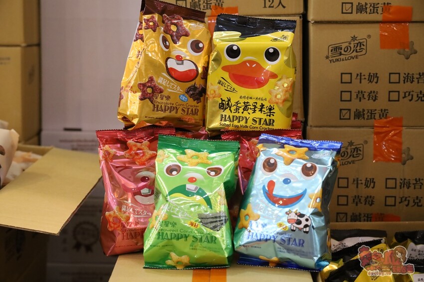 以夾心內餡的玉米棒,還有這看起來超可愛的星星樂餅乾,兩款都很吸引我們注意,尤其是星星樂,可愛的萌包裝,甚至還有五種口味可以挑選,讓人會很心動。