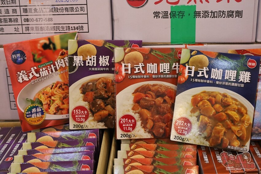 除了泡麵之外,我們自己也很喜歡在家屯個幾包調理包,除了疲老闆獨家商品有熱賣的調理包之外,這裡也有各式咖哩、義式醬料共有六種口味,重點是價格都是50元有找。