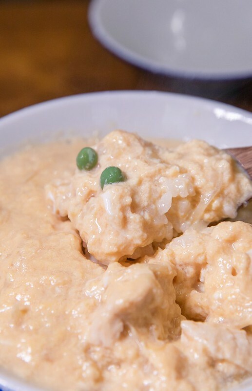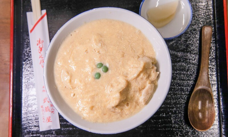 順便說一下,這一碗鳥取雞肉親子丼放著三粒青豆,這在日本的餐飲文化也有一個故事和說法,越是像這樣的老食堂、特別是帶點洋食風的都有。加青豆的起源說法,一般公認來自於東京銀座的一家百年洋食屋——「煉瓦亭」,當時的招牌蛋包飯上便放著三粒青豆(這是例外一個典故,奇數是吉祥的數字),後來煉瓦亭的蛋包飯紅了,一般的食堂也開始學著賣,但為了能跟上時代風,於是在一些料理上也學著放三粒青豆,有一種跟上時代潮流的阿Q心態...或者可以用現代的賣「文青」的網紅風來理解。