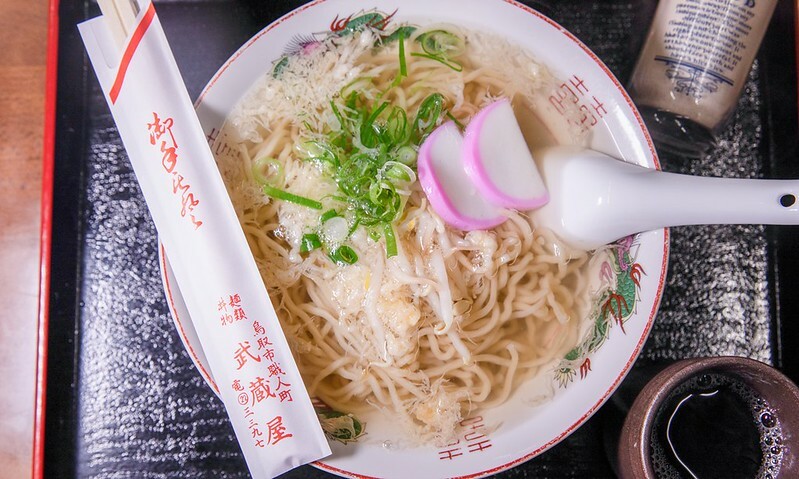 如果鳥取只能選一碗麵,我的答案可能不是那碗山陰山陽唯一的米其林拉麵「ホットエアー」,也不是倉吉老街上讓我一碗定魂的「三日月-牛骨拉麵」,而是最足以代表鳥取的拉麵,更讓孤獨的美食家破例,漫畫、電視劇同時登場的「素拉麵」。要談鳥取最有特色的素拉麵,自然要從創業超過百年,也是素拉麵發祥店的「武藏屋食堂」吃起。