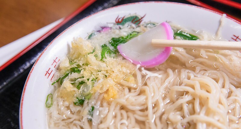 魚板、炸屑、蔥花、甚至是一點點豆芽,有一點素又不會太素,那種素可能是一種現代視覺上的素,又有一種明治年代素的微奢華,如果你試圖把自己拉回日本明治維新初期,鳥取這個鄉下地方的時空背景,也許就能明白我想表達什麼。