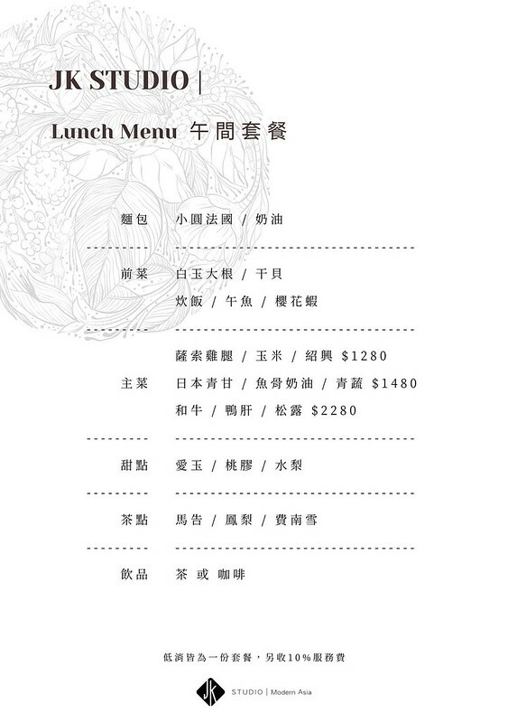 JK STUDIO Modern Asia(官網):台北市信義區基隆路一段147巷5弄13號,電話:02 2766 1891,營業時間:11:30-15:00、17:30-22:00(星期一休)