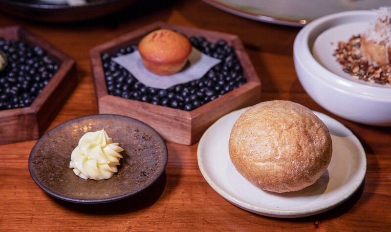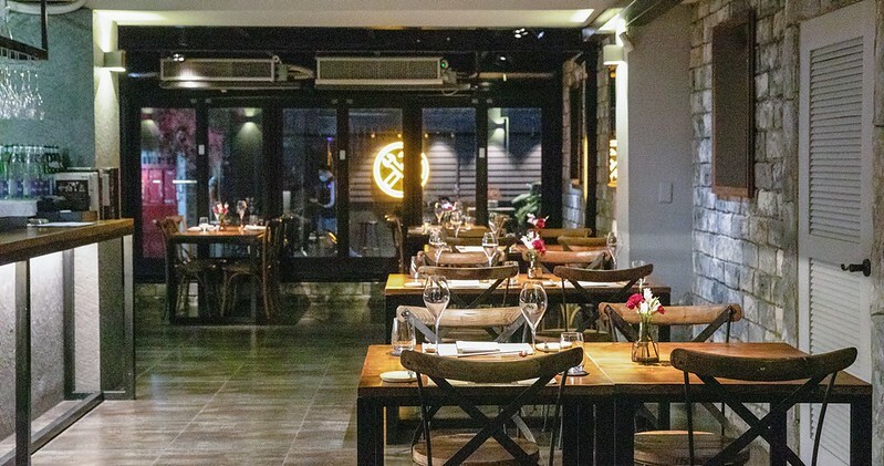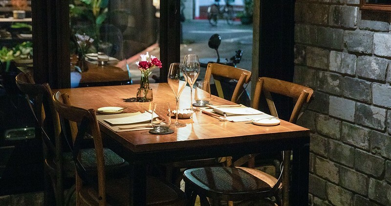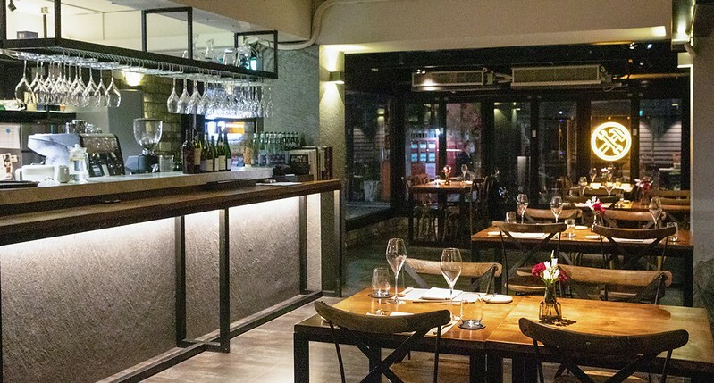 中間的走道顯得寬敞,一邊是酒吧櫃檯,另一邊則是用餐區,有一點低調沉穩的全新燈光設計,好像每一桌都有自己的約會空間。順便說一下,裡面還有一個16人的包廂,但因為當天有人在裡面辦活動,所以不便拍攝。