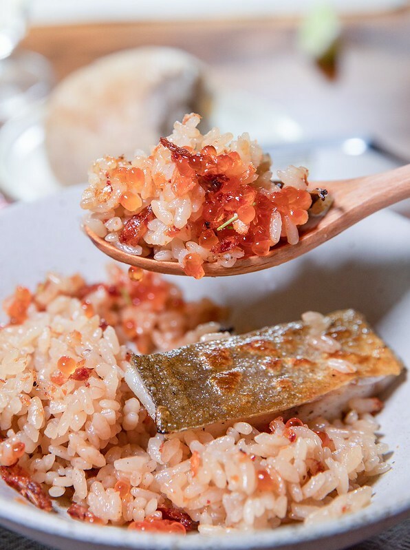 炊飯/午魚/櫻花蝦,這炊飯非常非常非常好吃,據說是主廚堅持用從日本扛回來的飯鍋煮的,用的自然也是新潟的越光米,加入一點點糖拌炒櫻花蝦、及鮭魚卵,添了香氣又不過份搶風采。午魚看似單純的煎烤,其實是以類似一夜干的作法先行風乾,吃來魚皮酥香、皮下的油質被恰到好處的烤出,仍略帶魚肉滋潤的鮮,單吃或是混著炊飯一起,都有讓人滿足的咀嚼,愛得亂七八糟。