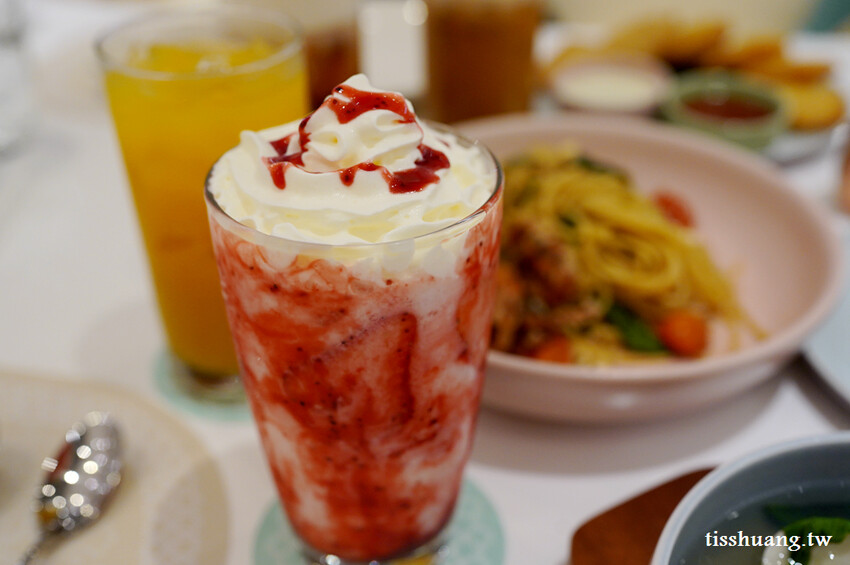 草莓大理石優格冰沙:每一口都能喝到甜美濃郁的草莓,還有優格微酸的味道混合在一起,感覺就像是在戀愛中一樣。