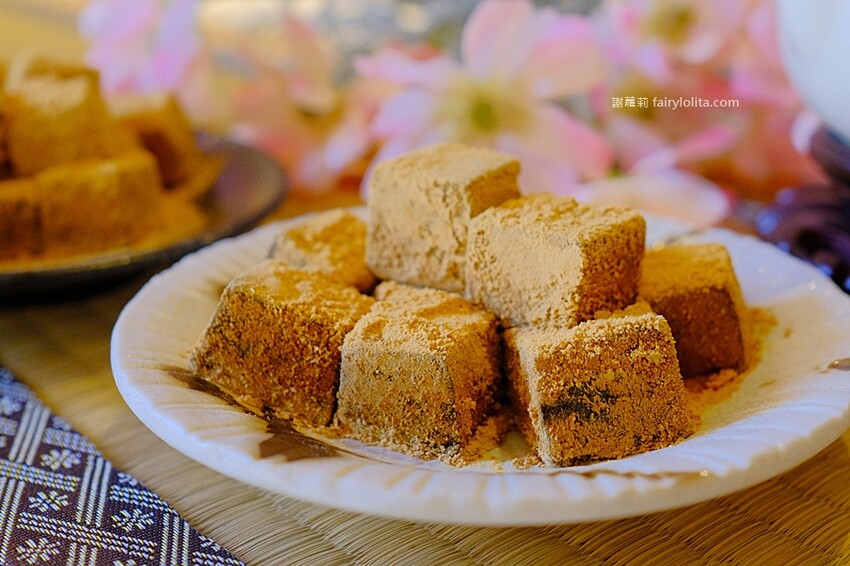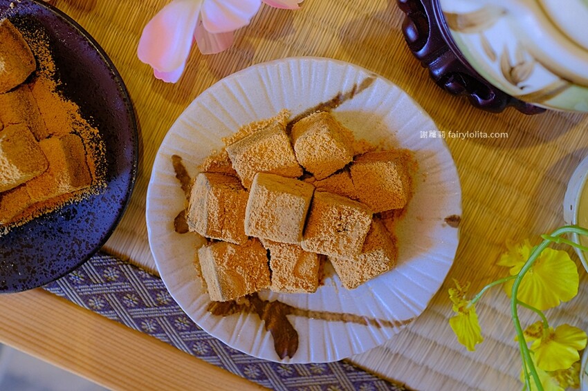 「竹葉堂御等路」的蕨餅切成一塊塊,一口一個剛剛好,原料使用黑糖製作,吃來除了富有彈性之外,還有明顯的黑糖香氣。
