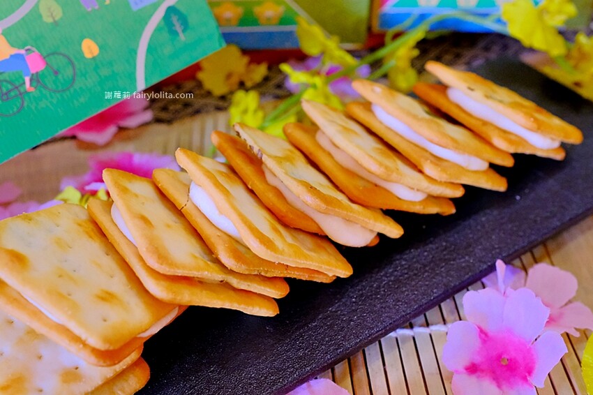 最棒的地方是蘇打餅乾鹹鹹的,內餡除了帶著奶味還有一股淡淡的甜味,吃來一樣不甜膩,非常容易入口又涮嘴。