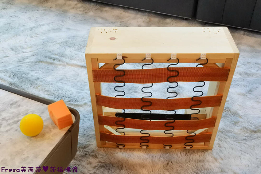 結合沙發內層的高空彈跳彈力帶及高密度泡綿!
