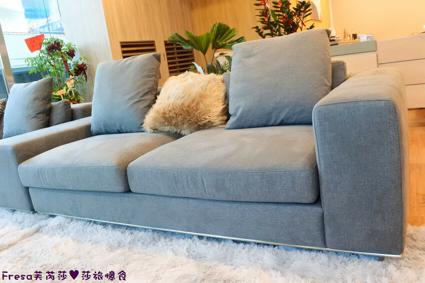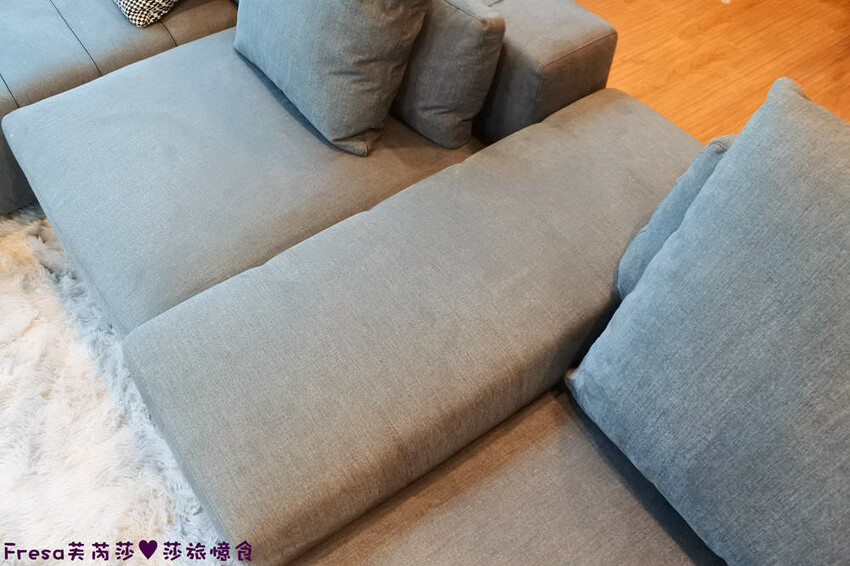 以及沙發內層選用的是高密度泡綿質地材質介紹.