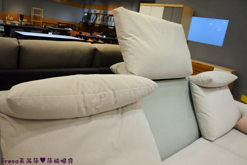 普立茲沙發展覽款式為淺白色,很清爽放鬆的色調.