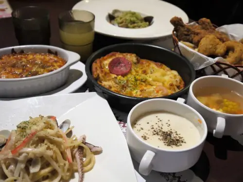 其實訂完我也沒仔細看價位,以為價格會跟最近比較紅的瀧厚差不多,事實是商業午餐的話才有可能比較便宜,但有稍微偏貴一點,兒童也要收費,然後來介紹小小的自助吧區,雖然主打是義大利麵、燉飯、薯條、冰淇淋吃到飽,但品項其實蠻單一的