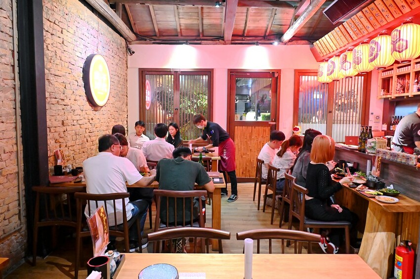 打造出日本居酒屋的氛圍感,從步入門前庭院的走廊就能感覺到跟其他居酒屋很不一樣的感覺。特別是戶外像是發呆亭的座位區,天氣如果涼涼的坐在這邊用餐佐搭旁邊燈籠造景的氣氛還挺好的。